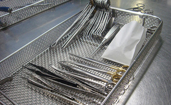 器械托盤、消毒筐加工工藝:不銹鋼軋花網、不銹鋼電焊網、不銹鋼編織網、不銹鋼沖孔網、氬弧焊接等。器械托盤、不銹鋼消毒筐表面采用電解,拋光等處理方法。